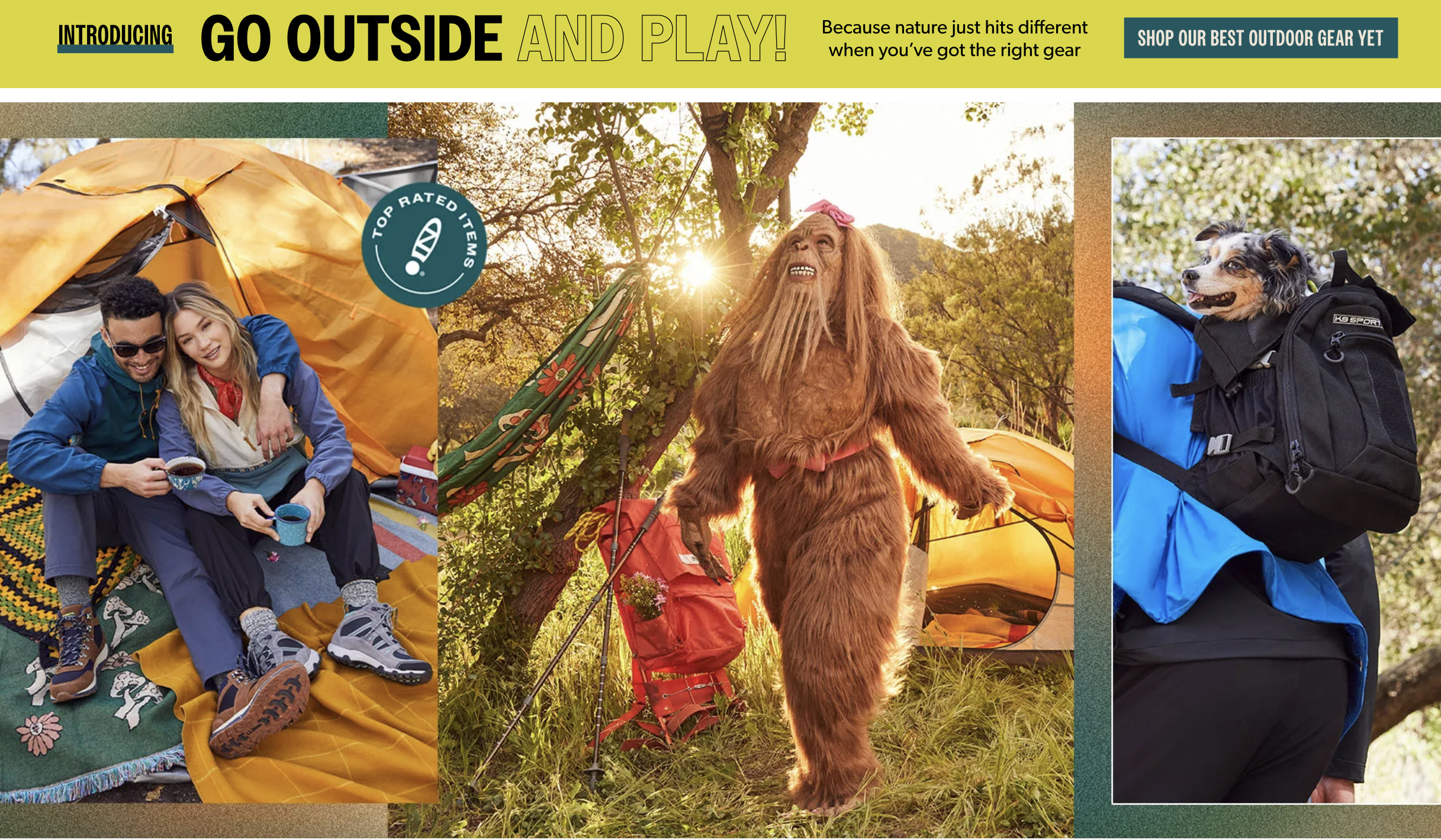 I wrote copy for Zappos’ spring 2022 outdoor campaign featuring a lot of great outdoor gear—and a little Big Foot Bae.